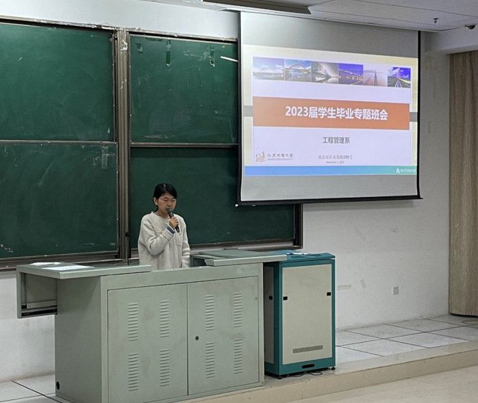 2022/11/07建筑工程学院工管系举办2023届学生毕业专题班会11月3日,建筑工程学院工程管理系在应天校区教学楼203举办了2023届学生毕业专题班会。会议由工程 -