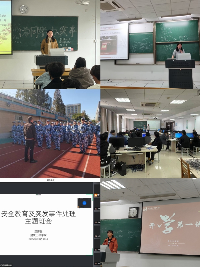 2022/11/03筑牢安全防线 打造平安校园 ——建筑工程学院开展安全教育主题班会为进一步提升学生安全意识,筑牢校园安全防线。10月份,建筑工程学院全体同学在各年级辅导员的统一组织下 -