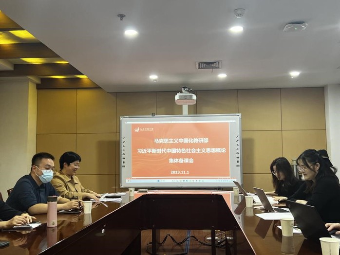 2023/11/06马克思主义中国化教研部召开集体备课会为进一步提升教学实效性,推动习近平新时代中国特色社会主义思想进教材、进课堂、进头脑,11月1日下午,马克思主义中国化教研部与习近平新时代中国特色社会主义思想概论教研部共同召开“习近平新时代中国特色社会主义思想概论”集体备课会,会议由马克思主义中国化教研部副主任汪莉丽主持,教研部全体教师参与会议。备课会... -