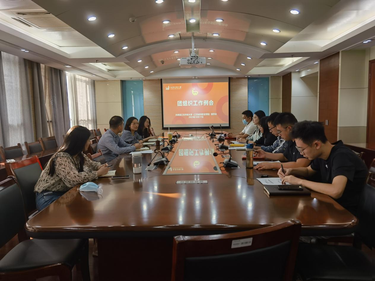2023/10/19我校开展10月团组织工作例会为进一步明确团组织任务,推进本学期团学工作计划,我校团委于10月17日下午在应天校区综合楼8楼会议室召开10月团组织工作例会。会议由团委书记包慧君主持,各学院团总支负责人、校团委全体成员参加会议。会上,潘宁带领大家共同学习了习近平总书记考察江苏重要讲话重要指示精神。习近平总书记着眼强国建设、民族复兴,聚焦... -
