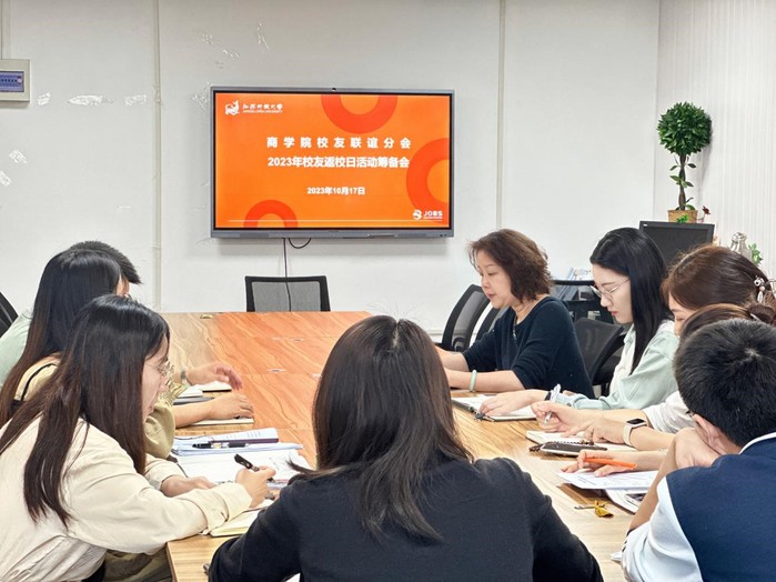 2023/10/19同聚商院 共叙情谊——商学院召开2023年校友返校日活动筹备会为贯彻落实学校关于2023年校友返校日活动具体工作要求,确保校友返校日活动顺利开展,10月17日上午,商学院召开2023年校友返校日活动筹备会,会议由学院党总支副书记丁晓华主持,全体学生管理工作者参加。丁晓华详细介绍学院2023年校友返校日活动方案,并对接下来筹备工作的具体内容、时间要求等进行细致地布置和安排。针对... -