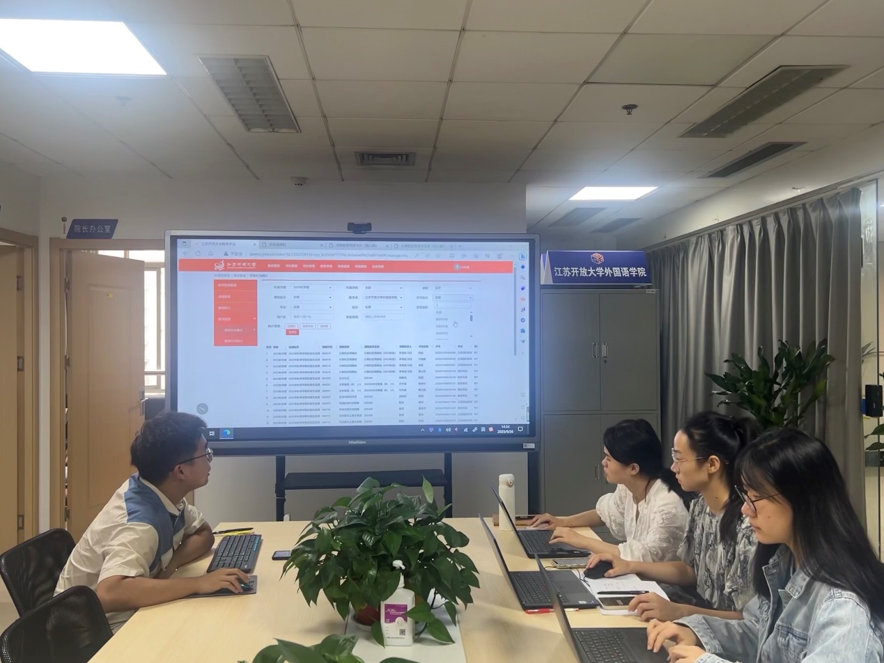 2023/09/26外国语学院召开开放教育学务导师培训会9月26日下午,外国语学院召开了2023秋季学期开放教育学务导师培训会,会议由学务导师刘杨鑫主持,四位新入职教师参加。刘杨鑫首先分享了《江苏开放大学教师专业技术资格条件(试行)》中“讲师资格条件”的“业绩要求”,提醒各位新进教师参与学生工作的必要性;随后,介绍了学院开放学生现有组成结构,并结合教务平台,重点... -