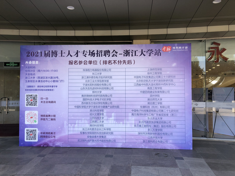 2020/11/11信息工程学院赴杭州参加浙江大学博士专场招聘会高校的竞争归根结底是人才的竞争,为进一步拓宽人才引进渠道,不断推进高层次人才队伍建设。10月30日, -