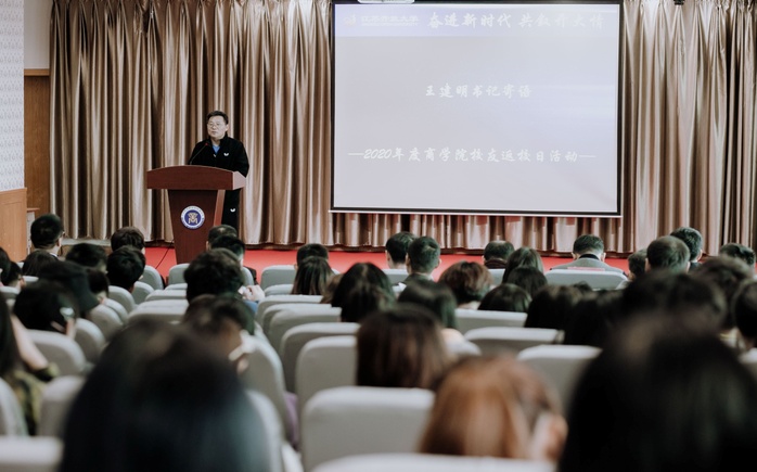 2020/11/09奋进新时代 共叙开大情——商学院举行2020年校友返校日活动11月8日下午,商学院2020年校友返校日活动在东校区五楼报告厅举行,校党委书记王建明、商学院全体党 -