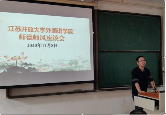 2020/11/10外国语学院举办师德师风座谈会11月8日下午,外国语学院在东校区教学楼阶梯教室举办了师德师风座谈会,袁利副院长主持了此次会议,外国 -