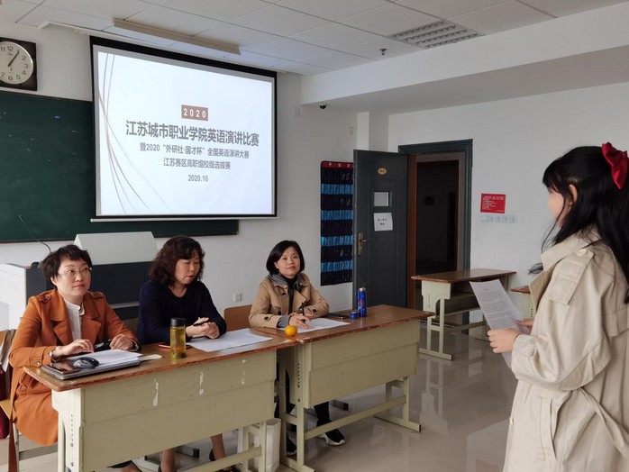 2020/10/26外国语学院成功举办2020江苏城市职业学院英语演讲比赛10月21日下午,在学校教务处指导下,外国语学院在东校区举行了2020江苏城市职业学院英语演讲比赛暨 -