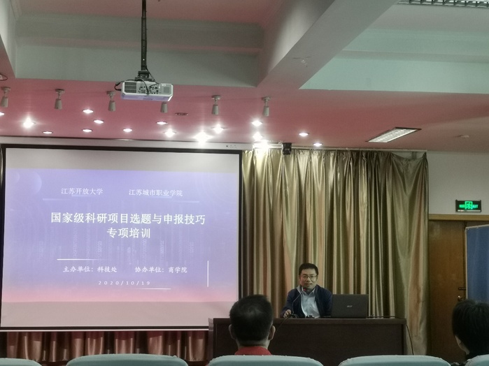 2020/10/26商学院成功举办国家级科研项目选题与申报技巧专项培训2020年10月19日下午,由科技处主办、商学院协办的国家级科研项目选题与申报技巧专项培训在江苏开放 -