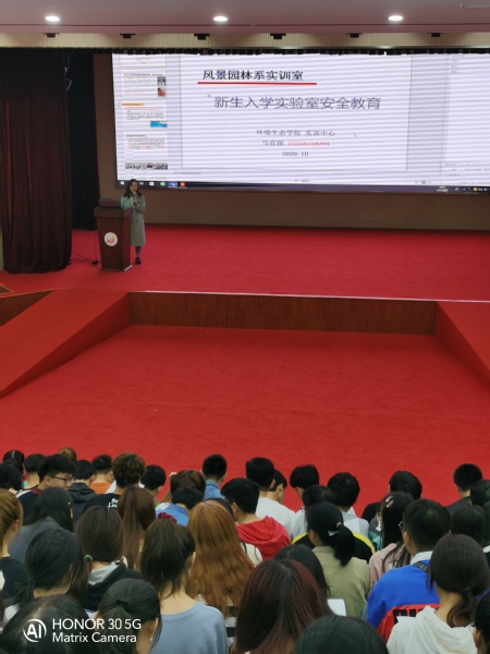 2020/10/20环境生态学院2020级新生专业教育系列活动(四)——实训中心组织风景园林系新生入学安全教育讲座为增强学生安全防范意识,提高安全知识和技能,降低受伤风险,环境生态学院实训中心于10月15日在体艺馆 -