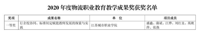 2020/10/19商学院获全国物流职业教育教学成果一等奖近日,2020年度全国物流职业教育教学成果奖获奖名单揭晓,江苏城市职业学院商学院物流与供应链管理系盛