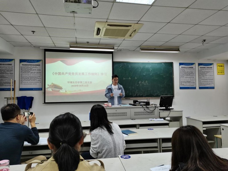 2020/10/19不忘初心,砥砺前行——环境生态学院第二党支部召开预备党员转正仪式10月14日,环境生态学院第二党支部在应天校区综合楼306召开了党员大会,为学生党员岳浩楠同志加入中 -
