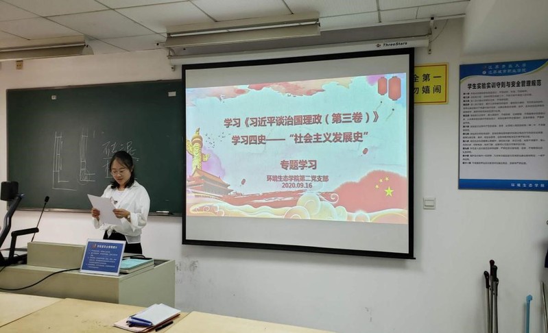 2020/09/21环境生态学院第二党支部开展党员活动日专题学习9月16日下午,环境生态学院第二党支部在综合楼301召开了本月主题党日学习活动,学习专题为《习近平谈 -