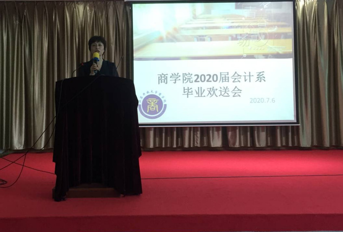 2020/07/07商学院会计系组织召开2020届毕业生欢送会2020年7月6日下午,商学院会计系在东校区综合楼五楼报告厅组织了2020届毕业生欢送会,商学院副院 -