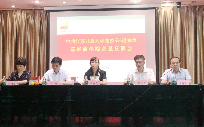 2020/07/06党委第6巡察组召开巡察商学院意见反馈会7月5日上午,党委第6巡察组在东校区召开巡察商学院意见反馈会,党委副书记、副校长、巡察组组长金丽霞,