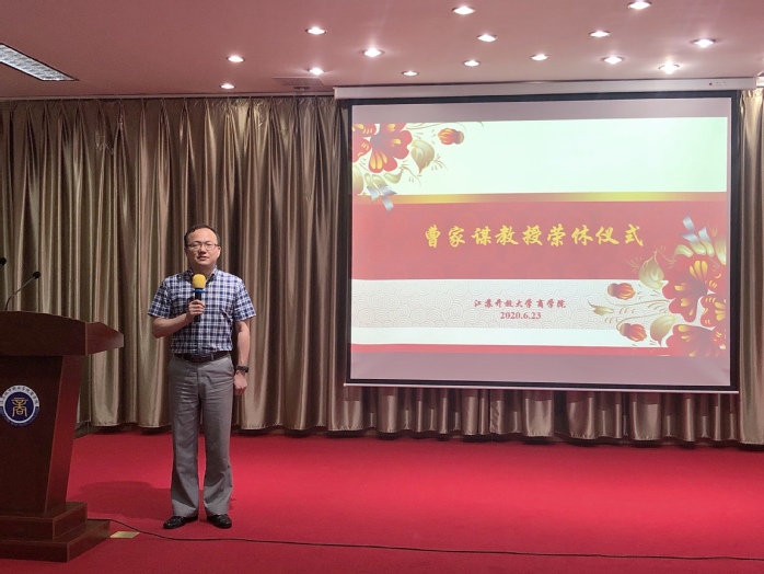 2020/06/24三尺讲台存日月,一支粉笔写春秋——商学院举行曹家谋教授荣休仪式6月23日下午,曹家谋教授荣休仪式在东校区综合楼五楼报告厅举行。荣休仪式由周晓珺副院长主持,全体教职 -