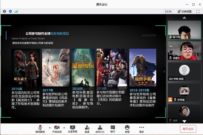 2020/06/23设计学院召开媒体设计系线上专场企业招聘会6月23日,设计学院举办媒体设计系线上专场企业招聘会,此次学院邀请南京⼀技教育科技有限公司项目部主管 -