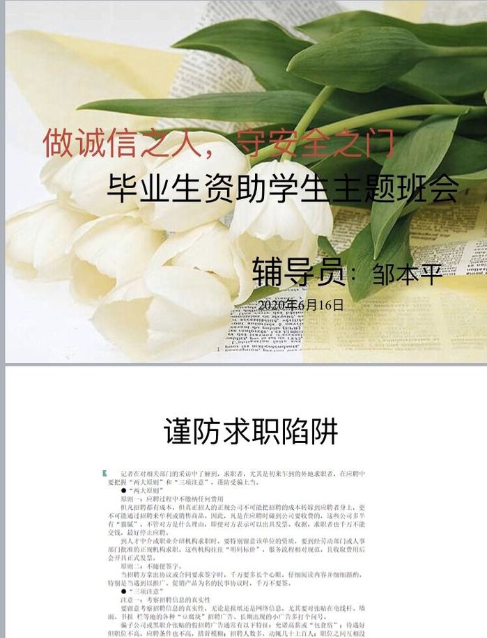 2020/06/19外国语学院团总支顺利开展“做诚信之人,守安全之门”的毕业生主题班会为深入学习贯彻习近平总书记关于安全生产重要论述,贯彻落实党中央、国务院关于安全生产重大决策部署,根据 -