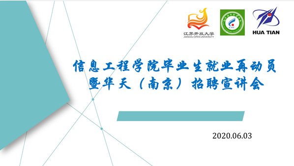 2020/06/04信息工程学院开展就业动员及网络招聘宣讲会助力毕业生就业为全面做好20届毕业生就业工作,信息工程学院于6月3日上午9:30,在腾讯会议平台开展信息工程学院2 -