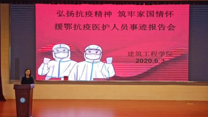 2020/06/04弘扬抗疫精神 筑牢家国情怀——建筑工程学院组织援鄂医护人员事迹报告会6月3日下午2:30,建筑工程学院在应天校区体艺馆406举办了援鄂医护人员事迹报告会,校学工处副处长 -