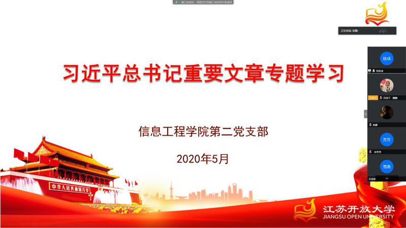 2020/06/04“学文件精神,悟初心使命”——信息工程学院第二党支部开展专题学习研讨5月中下旬,信息工程学院第二党支部结合2020年度党员教育培训书目及篇目,组织开展专题学习研讨会。5 -
