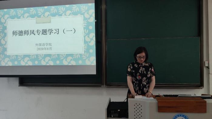 2020/06/04强化师德师风建设,争做四有好老师——外国语学院召开教职工师德师风专题会议6月3日上午,外国语学院组织全体教职工在定淮门东校区教学楼阶梯教室开展了“师德师风”专题学习会议,学 -
