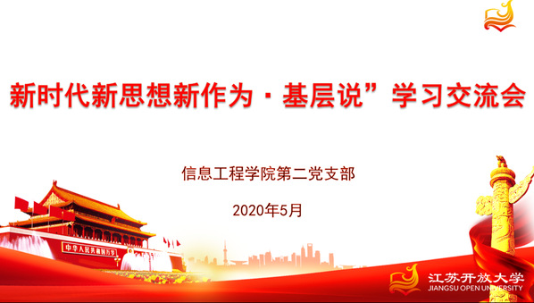 2020/06/04“新时代新思想新作为·基层说”——信息工程学院第二党支部开展专题学习交流活动5月22日下午,信息工程学院第二党支部开展“新时代新思想新作为·基层说”专题学习交流活动,会议由支部 -