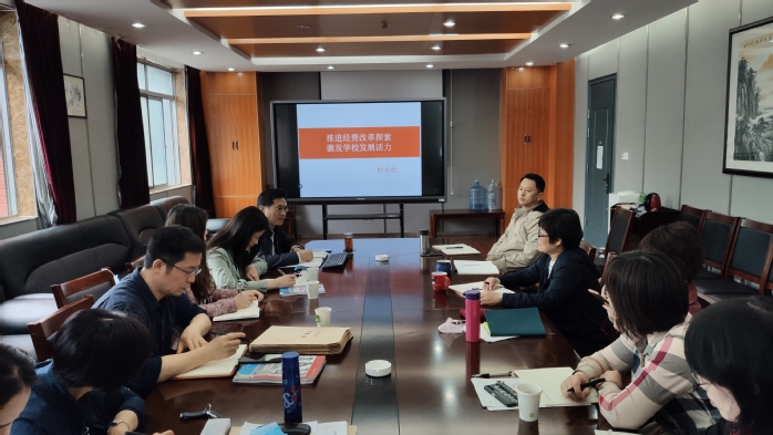 2020/05/11学校财务处许浩处长一行来外国语学院做宣讲5月9日上午,学校财务处许浩处长,顾国庆副处长一行来到外国语学院,以“推进经费改革探索,激发学校发展 -
