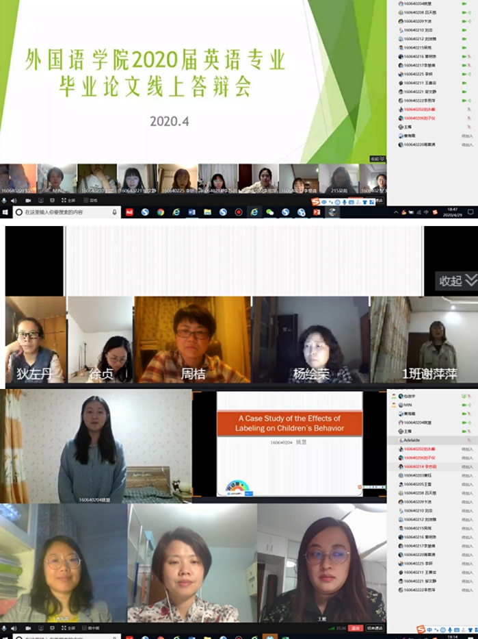 2020/04/30外国语学院顺利进行本科生毕业论文“云答辩”“Good evening, distinguished professors and teache -