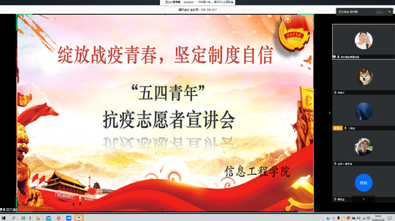 2020/05/01“绽放战‘疫’青春,坚定制度自信”——信息工程学院开展抗“疫”志愿者线上宣讲活动4月28日晚6点30分,信息工程学院开展“绽放战‘疫’青春,坚定制度自信”的线上主题教育活动。学院参 -