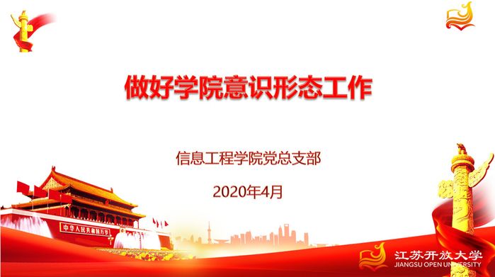 2020/04/29信工院党总支部理论学习中心组深入开展关于“做好学院意识形态工作”专题学习4月29日中午12点30分,信息工程学院党总支部理论学习中心组召开视频会议,开展关于“做好学院意识形 -