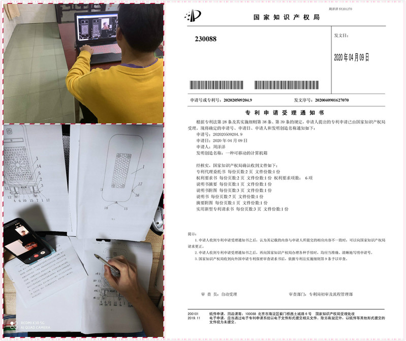 2020/04/15技能强化“云”指导,创新培育助战“疫”——信息工程学院学生专利申请获国家知识产权局受理4月9日,信息工程学院18软件2班周洋洋、丁浩龙同学申请的实用新型专利《一种可移动的计算机箱》获国家 -