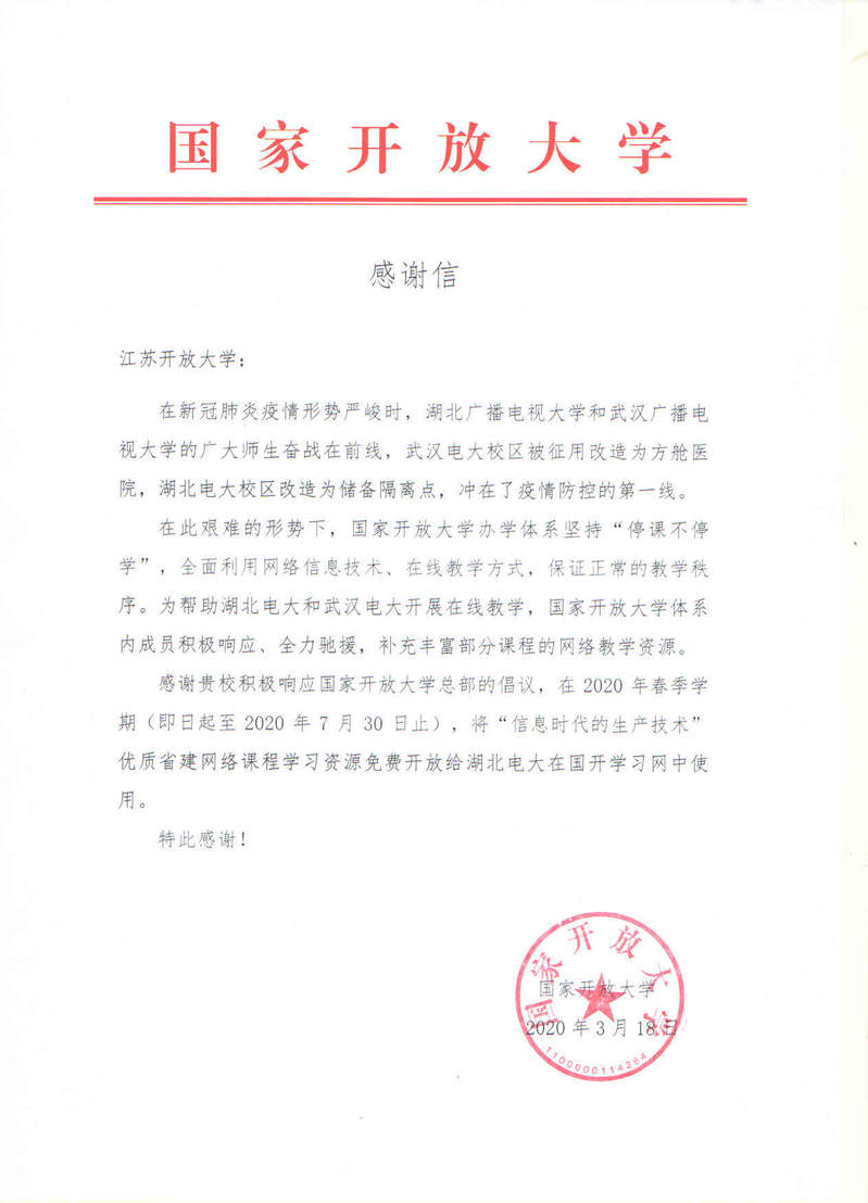 2020/04/15守望相助、共克时艰——江苏分部自建课程资源为湖北分部共享2020年新春伊始,一次突如其来的新冠肺炎疫情,打乱了正常的工作计划。在新冠肺炎疫情形势严峻时,湖北 -