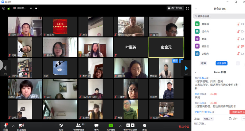 2020/04/15教育学院召开疫情防控专题线上培训会为贯彻落实学校《关于组织开展教职工返校“防疫第一课”的通知》文件精神,切实提高教师防护意识和防疫能力 -
