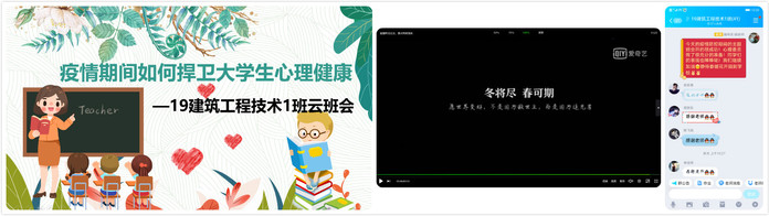 2020/03/30“守护学生心理健康 打赢疫情防控阻击战”——建筑工程学院组织同心战役•云班会为贯彻落实疫情防控工作部署,充分发挥网络思政育人功能,加强学生心理健康教育工作,广泛普及心理健康知识 -
