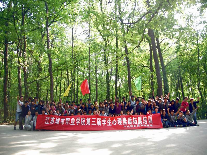 2010年4月24日,江苏城市职业学院第三期学生心理素质拓展活动在中山陵素质拓展基地成功举办。本次活动的主题是:挑战自我,沟通你我。活动目的是促进校内学生交流,拓展学生心理健康素质。