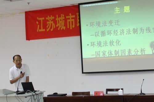 系列讲座三——《环境法理论前沿与教学方法探讨》,主讲教师是法学博士、华东政法大学的曲阳副教授。讲座开头就谈了环境法的变迁框架并以循环经济法制为线索,分析了环境法变迁原因;接着谈了环境法软化并结合了国家体制因素进行分析,最后就环保意识教学问题与在座教师进行了互动讨论。