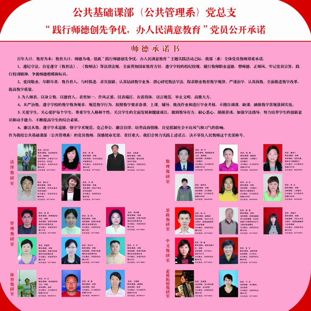 公共基础课部(公共管理系)党总支“践行师德创先争优,办人民满意教育”党员公开承诺公示
