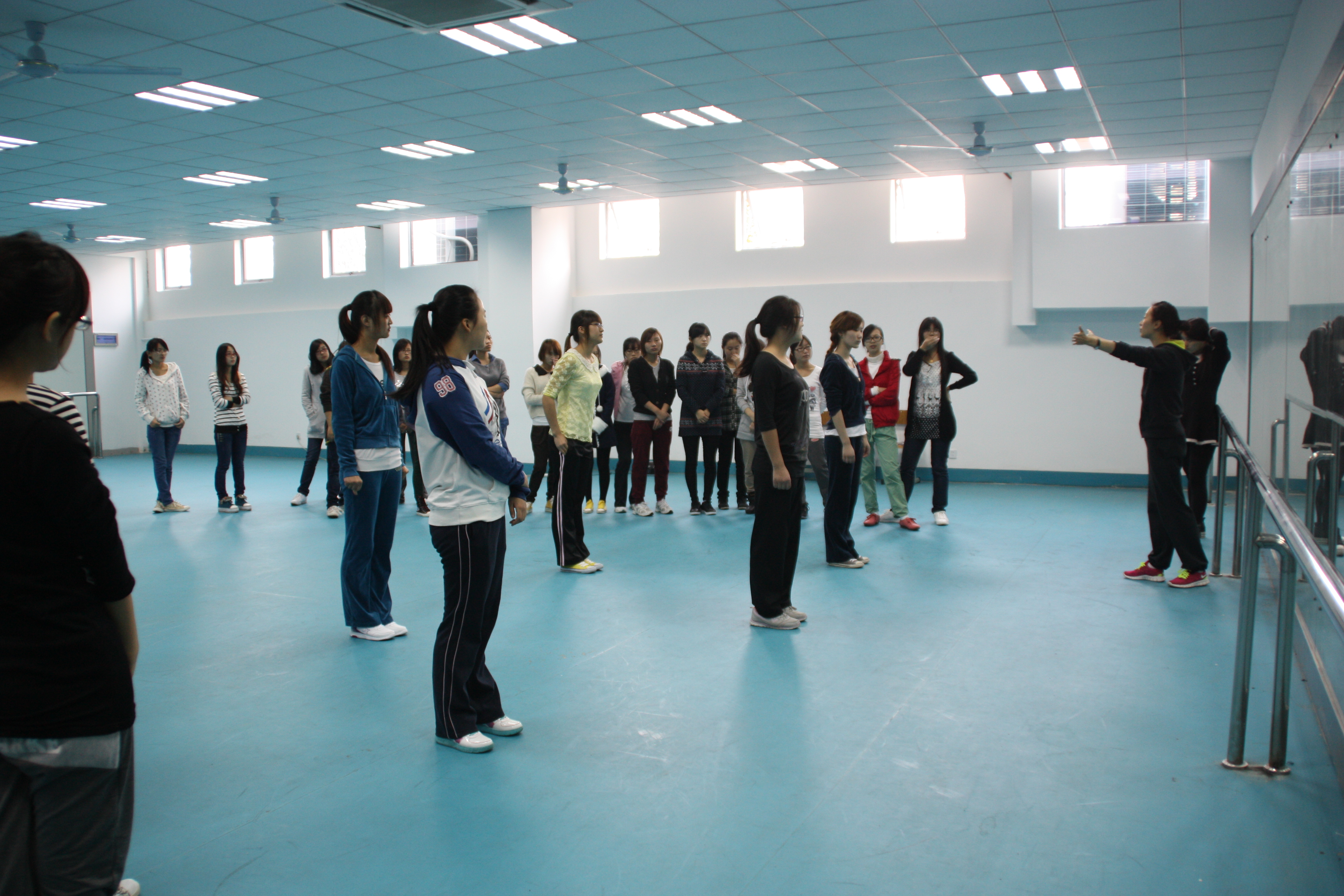 11月1日上午,我院公共基础课部体育教研室许悦老师实践教学观摩活动《体育(健美操)》在应天校区体艺馆进行。参加现场观摩的有:公共基础课部主任史灿方、副主任季海菊、体育教研室主任孙志和体育教研室教师、我部督导和其他各教研室部分教师。