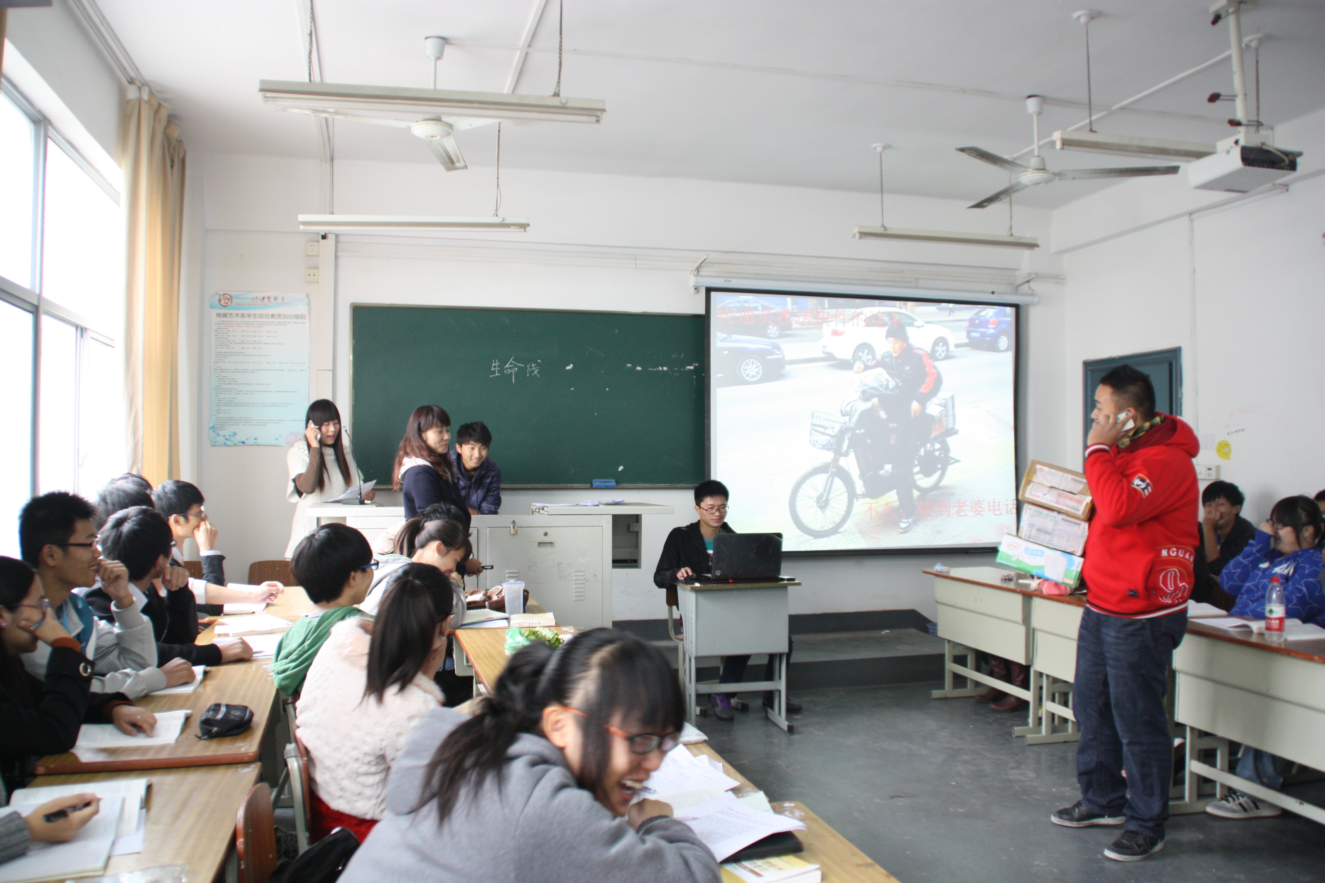 值得一提的是,授课教师成蕾并没有物流管理专业教育背景。自本学期为财经系物流管理专业学生授课以来,她时常请教财经系物流管理专业负责人和任课教师,收集了大量的行业知识和人才培养调研数据。这堂课的情景剧富有真实感的剧情就是她在访问了一位2011届已毕业的优秀校友的基础上设计的。以这位优秀校友提供的自己在顺丰快递的工作经历为蓝本,成蕾老师联合了行业人士以及本专业学生,将工作的场景高保真地搬上了课堂。