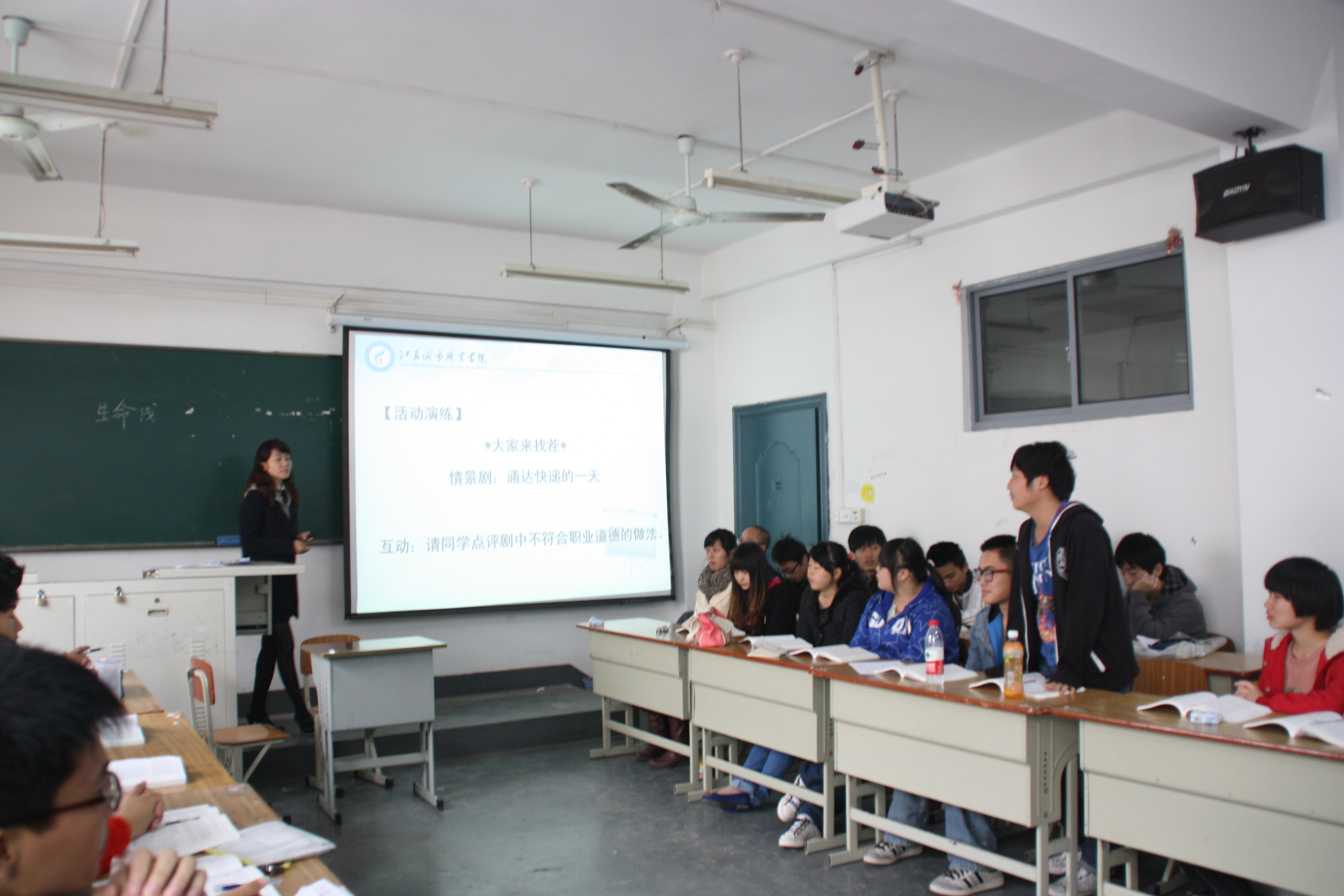 11月8日上午,我部成蕾老师为财经系2012级物流管理专业学生所做的《思想道德修养与法律基础》教学观摩课,是我部创新公共课教学、坚持“职业导向、融入专业”的又一次成功尝试。本次课是我部本年度连续开展的第八场教学观摩课。院教学督导办公室罗德真副教授和黎蓉副研究员、我部领导以及其他各教研室的部分教师参加了观摩和课后的教学研讨活动。