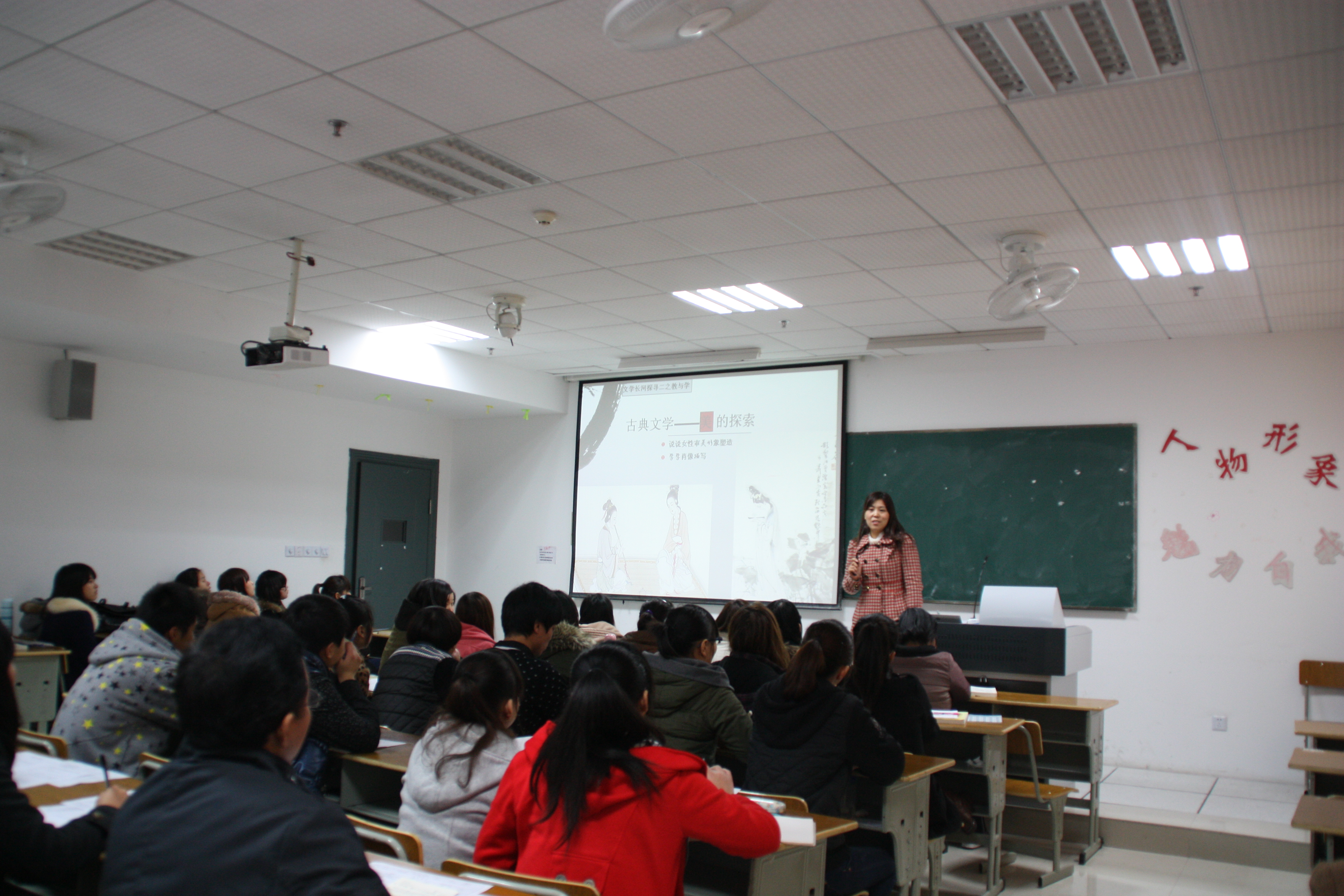 11月29日上午第三节课,我院公共基础课部杨丽老师以“文学长河的探索——古典文学之魅”为主题的《大学语文》公开课在应天校区教学楼801教室举行。本次公开课授课对象为2012级人物形象设计(化妆品应用)班级的学生。院教学督导办公室罗德真副教授、黎蓉副研究员、公共基础课部史灿方主任、季海菊副主任,以及公共基础课部各教研室部分教师进行了现场观摩。