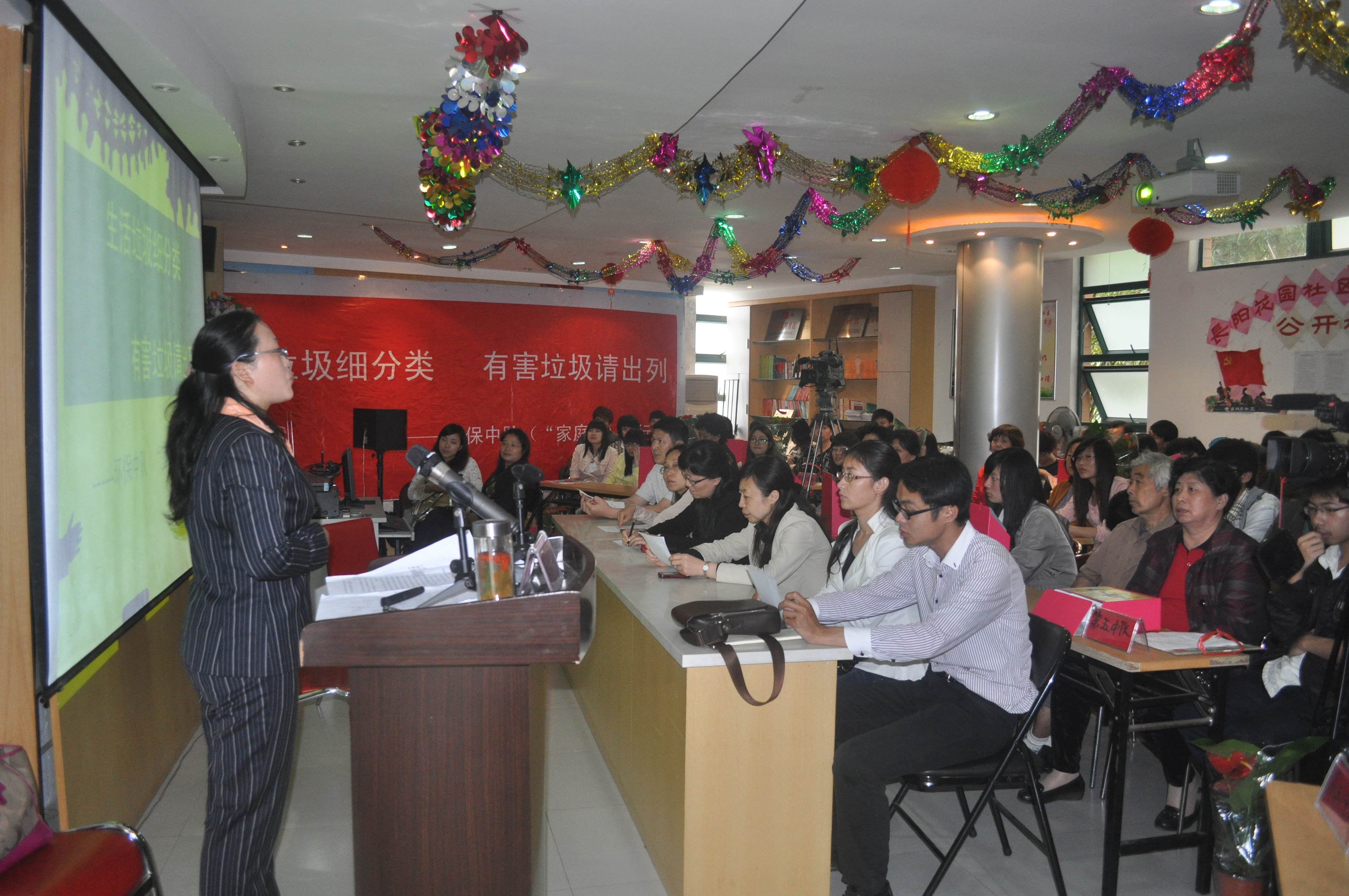 本次实践活动分为两个环节:“宣传分享”和“共同行动”。在第一环节中,学生金芳菲小组作业汇报以《你,城市生活垃圾(有害垃圾)知多少?》为题,带给同学们和居民们以生活垃圾的基本知识;学生徐丁玲小组的社会调查汇报以《从垃圾分类的社区调查,析城市居民环保意识——关于长阳社区调查汇报》为题,让大家充分认识到“环境保护、人人有责”;来自政府、企业、家庭和学校的嘉宾交流,告诉大家垃圾分类是一个系统工程,复杂工程,必须合力而治、合力而为。无论是政府还是企业、家庭、学校在“逐步做到城市生活垃圾分类、运输,并积极开展合理利用和实施无害化处置”中起的应有作用。第一环节,以张玉兰老师《爱的倡议——来自新闻案例千盒过期药品被丢垃圾箱所感》的主旨讲解结尾,让学生们深刻认识到对宣传、维护和践行社会公德和公共生活的法律负有义不容辞的责任。在第二环节环保中队“共同行动”中,设计了行动一: 20户环保中队的学生代表赠送20户家长“礼物”——学生自己设计的生活垃圾细分标识卡、改装的部分有害垃圾回收箱及学生为家长准备的一盆绿植红掌(友谊之花);行动二:20户环保中队学生成员代表走进“家庭”,与家长共同安置标识卡和回收箱。