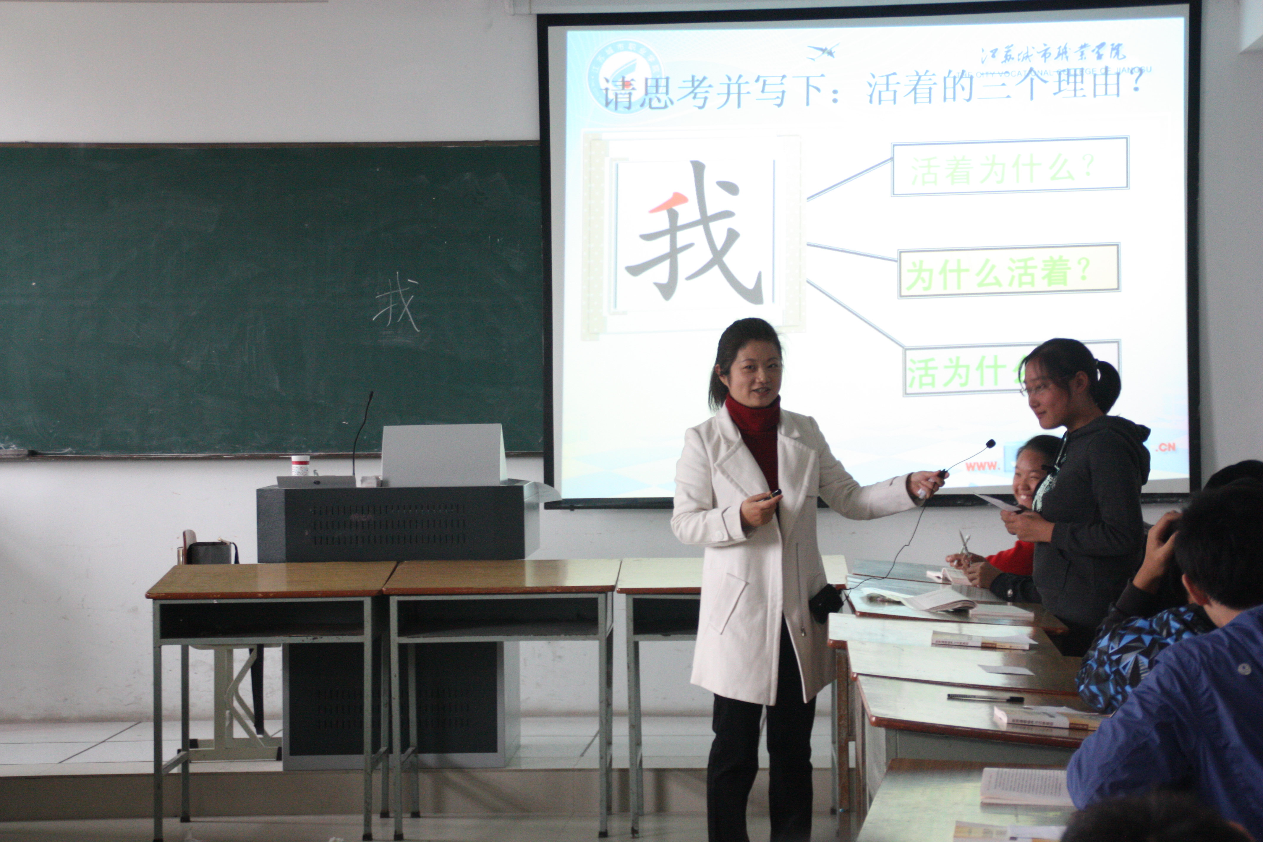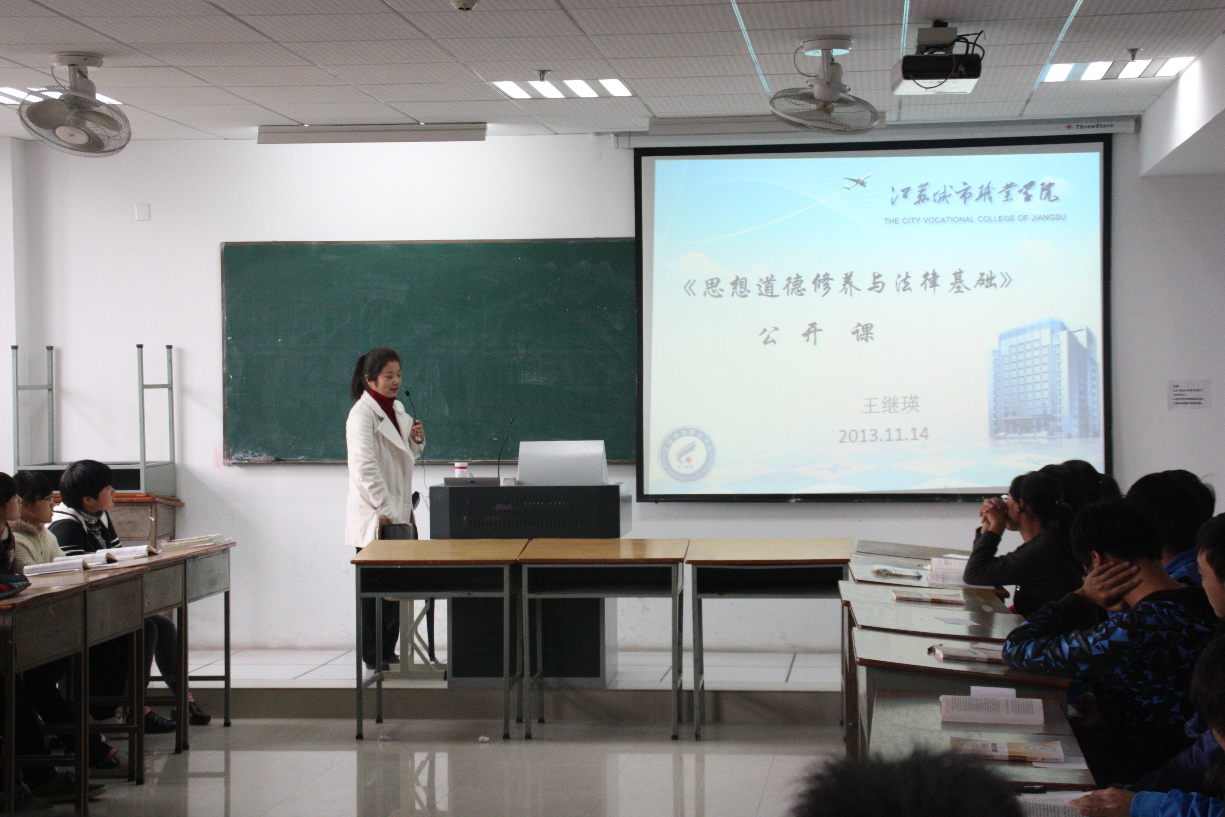 2013年11月14日下午,公共课基础部一场别开生面的《思想道德修养与法律基础1》教学公开课在应天校区教学楼606教室举办。公开课主题“领悟人生真谛,创造人生价值”,由思政教研室王继瑛副教授主讲。王老师从人生的意义和人生观的科学内涵讲起,抽丝剥茧,层层剖析,为学生演绎了精彩而生动的人生哲理。讲授既穿越时空,梳理了从亚里士多德到马克思,古今中外思想家关于人的本质的阐述;又“脚踏实地”,从“放牛娃的人生观”引出“人为什么活着”这一亘古永恒的话题,指引同学们深入思考人生的目的和意义、指向和追求。继而再从汉字“我”入手,作别样解读,寓意“人生就是一个在不断寻找自我的过程”,由此循循善诱,因势利导,转入正题:从人生态度和人生价值等诸多层面为同学们解答了“人生应该如何有意义活着”这一问题。王老师的课堂,除了有多媒体视频图文的有机组配外,还不断穿插现场互动,张弛有度,更值得称道的是,她充满激情的教风,感染了在场80多位建工系听课的同学。