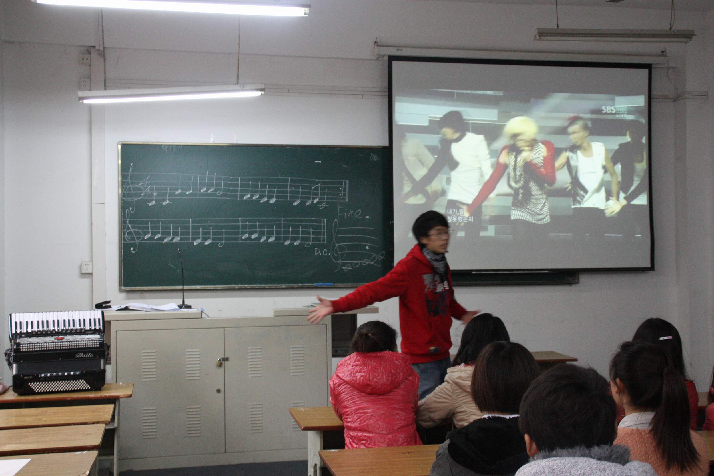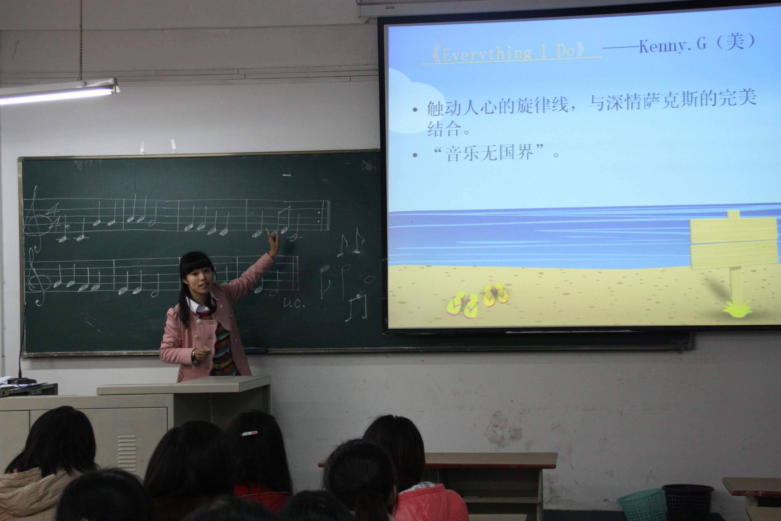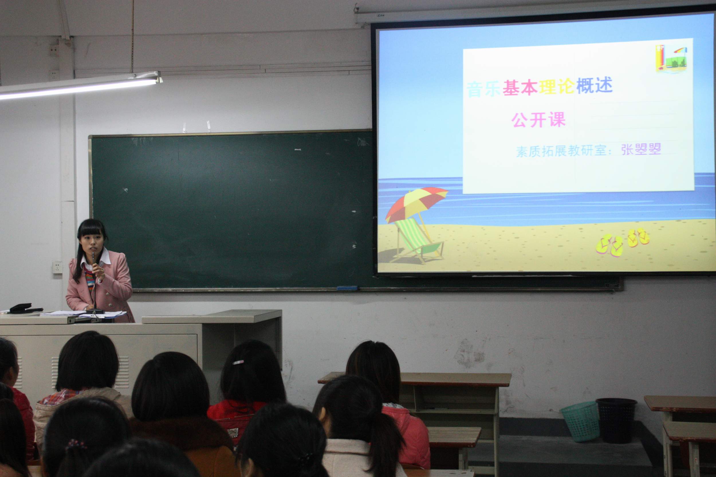 2013年11月27日下午3点20分,一堂融“音、画、情、美”为一体的《音乐基本理论概述》公开课在东校区教学楼101教室进行,公共基础课部素质拓展教研室张曌曌老师带领大家步入音乐殿堂,聆听美的传说。参与本次公开课观摩的有公共基础课部史灿方主任,季海菊副主任,素质拓展教研室全体教师,体育教研室、思政教研室、管理教研室、数理教研室的部分教师。