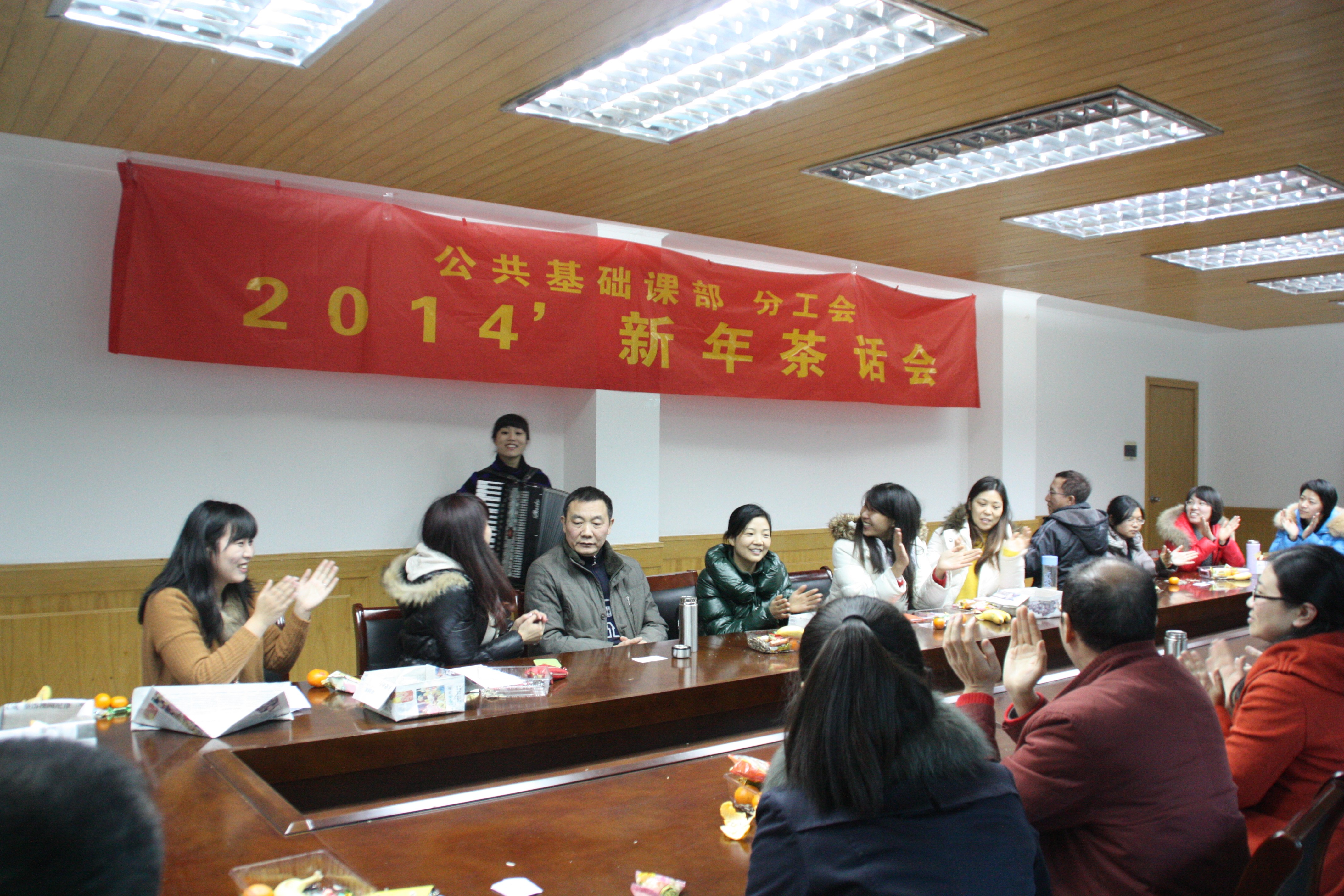 即将过去的一年,公共基础课部“分工会”全体教职工为了学校的教育事业辛勤耕耘,忙碌而充实,留下来坚实的足迹,收获了丰硕的业绩。史灿方代表我部向勤勤恳恳,任劳任怨,关心集体,团结友助,敬业奉献的教工们表达了最诚挚的感谢和新年的祝福。他说,“2014年的新年历,又承载了我们全体会员的新希望,新梦想,新期待,我们当精诚团结,勠力同心,锐意进取,建设和谐分工会,携手共创新辉煌!”