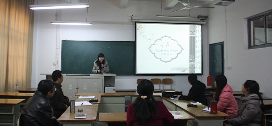 张曌曌老师与大家解读了大众传播媒介中的古琴音乐。她从古琴的文学、电子媒介、网络三方面,结合古典小说《红楼梦》、《三国演义》,当代武侠小说《笑傲江湖》,以及唱片、电影、电视等方面对于古琴音乐运用的实例讲授了古琴的传播,重点赏析了电影《英雄》中的古琴音乐场景,并就影视传播中古琴形象的偏误做了解析。张老师希望通过现代电子媒体中对古琴音乐的得失分析,为古琴的正确运用提供借鉴和帮助。古琴是中国传统文化中的重要组成元素,在其多元化的传播中,强化古琴音乐赏析教育,可以更有意识地去培养学生对古琴的热爱之情,让中华民族这一国粹文化瑰宝代代相传。