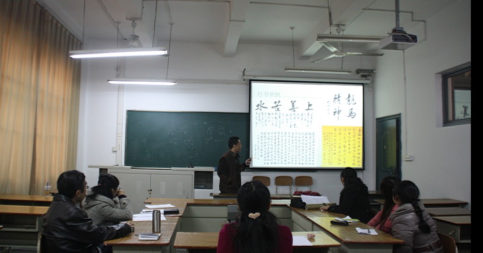 最后,素质拓展教研室聂琦峰老师与大家分享了书法艺术与文人情怀——行书与草书。中国书法是一种很独特的视觉艺术,是士大夫艺术的集中体现,是中国审美观所形成的独特艺术体系。聂老师以《兰亭集序》《丧乱帖》作品为例,从作者性格、情绪、情感等方面,深入解读了行书与行草的区别,同时,对中国传统艺术中的内敛、自省、先天抽象、高度程式化等特色进行了详尽的分析与阐述。