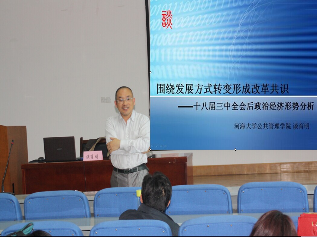为进一步坚持理性表达诉求,提升舆情研究和舆论引导的科学化水平,加强学院宣传思想阵地管理,弘扬正能量,坚持主旋律,通识教育学院于2015年4月22日下午2点在古平岗校区综合楼5楼报告厅举办了“舆情研究、评析和引导”专题学习活动,特邀河海大学公共管理学院谈育明教授作了《如何正确看待与引导网络中出现的热点事件》的专题讲座。讲座由通识教育学院院长束正煌主持,学院全体教职工共40余人参加了讲座。