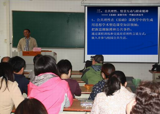 金教授教学经验丰富,理论造诣深厚,学术视角探新,教育理念科学,他的讲演极具激情和感染力,引发了参加讲座的教师认真聆听,积极互动,共同思考,展开讨论,大家都觉得本次讲座受益匪浅,俨如一堂生动有效的教法改革实践课。讲座既有宏观的理论溯源,又有微观的教法实践;既有静态的知识结论,又有动态的学术思考;既有传统的教法传承,又有创新的观点涌现。本次讲座的开设,对我院思政课在内的通识教育课程教育理念、教学方法和实践教学样态的改革创新将起到积极的促进作用。