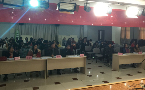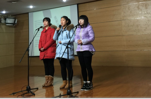 2015年12月19日上午,江苏城市职业学院2015级新生在古平岗校区大学生活动中心举行了第一届以“传承经典,弘扬国学”为主题的文学经典诗歌朗诵大赛。通识教育学院束正煌院长、史灿方书记,宣传部谢冬冰处长,中文教研室的许广民老师、章淑君老师、杨丽老师、顾春花老师担任了比赛的评委。束正煌院长作了致辞。
