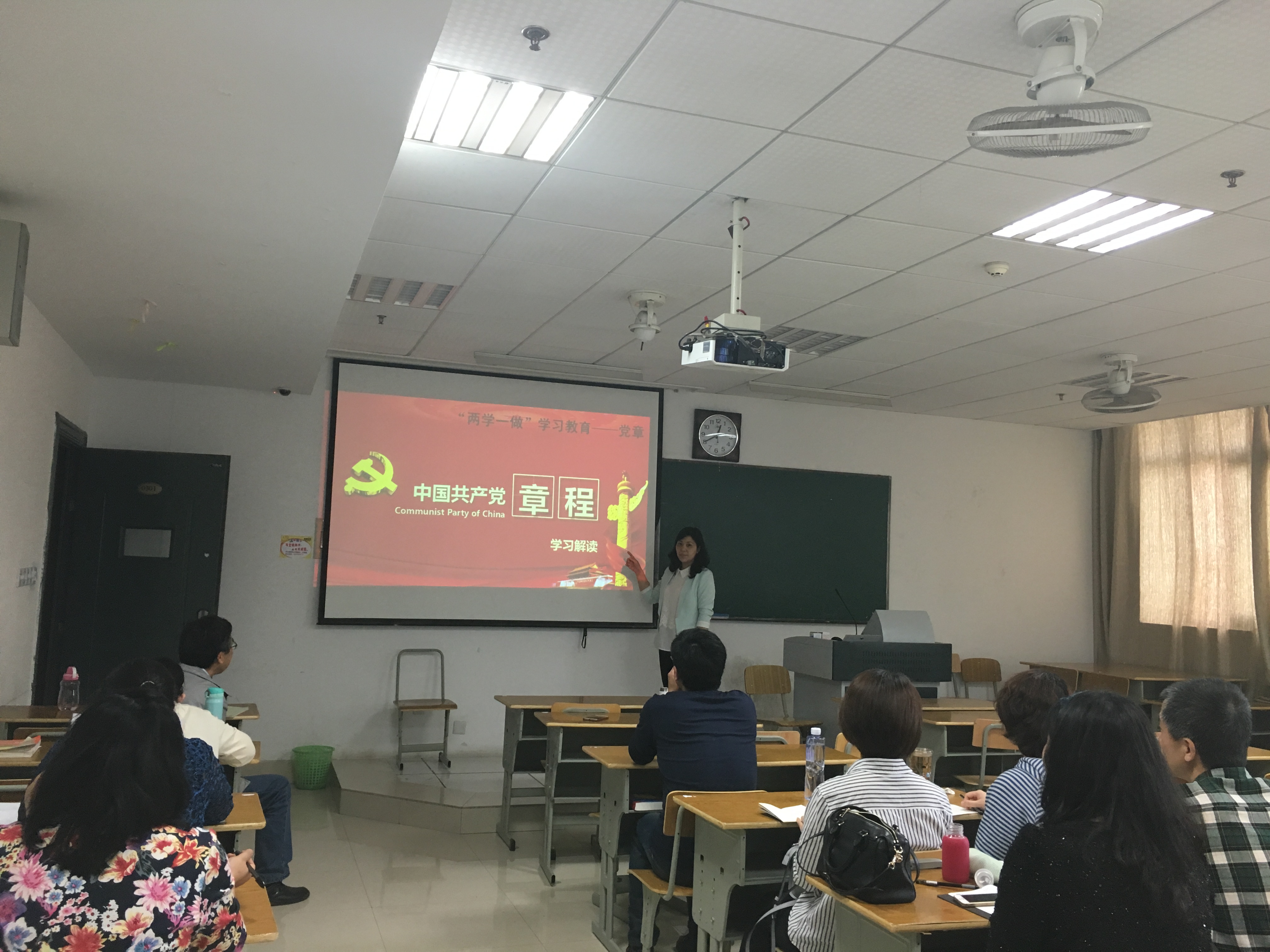 第一党支部姚琴芬《从党章的历史演变看党的与时俱进》,从历史的角度,系统回顾党章的历史由来和发展历程,深入分析了历次修订党章的新变化、新特点,重点对党的十八大修改后的新党章进行了解读,明确了新形势下党员领导干部学习贯彻党章的标准和要求,促进党员进一步深化了对党章的理解,切实把党章的要求内化于心,外化于行。吴炜炜《解读中国梦,做积极追梦人》,主要从“寻梦”、“筑梦”、“圆梦”三个层面对“中国梦”这一重要指导思想和重要执政理念进行了解读分析,对“中国梦”的概念阐释、本质内涵、时代特征、实现路径、重大意义等方面进行了深入学习,引导党员结合自身实际积极思考“中国梦•我的梦”,鼓励大家在事业、专业、工作、生活上都要做积极追梦、努力践行的人,以梦想的力量激发自身发展新活力,特别要在我校建设新型大学的征程中怀揣梦想、积极奋进。